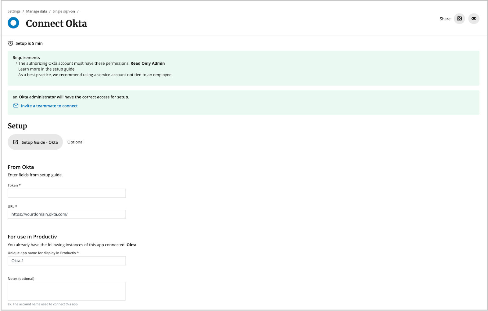 If you are not a Productiv Read-only SSO Admin, or do not have the proper SSO provider permissions, you can invite a teammate to complete the integration.
