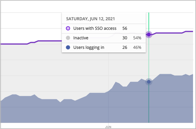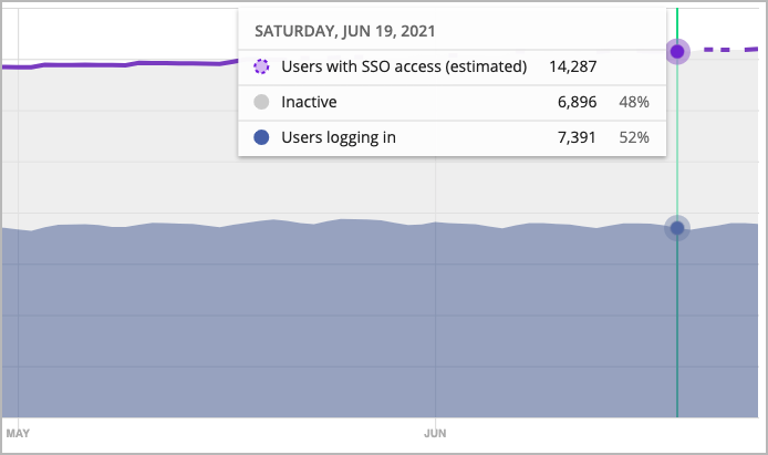 - Users with SSO access (estimated) is based on information about users allowed access, because the system was unable to get data for that day (for example, due to vendor-imposed throttling)