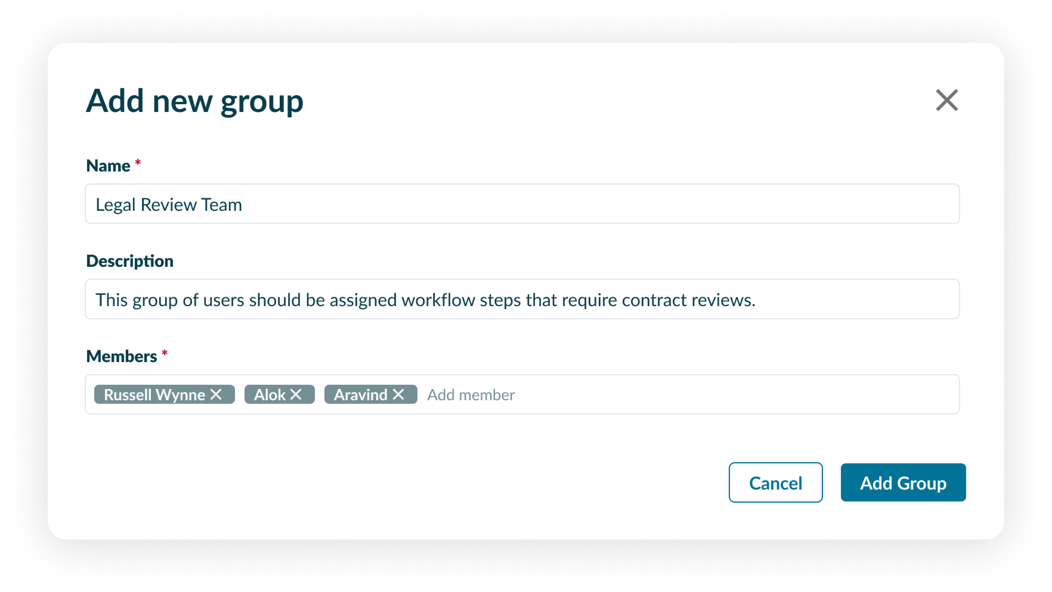 - Once a group is created, they can choose to assign a workflow step to a group in the renewal workflow builder.
