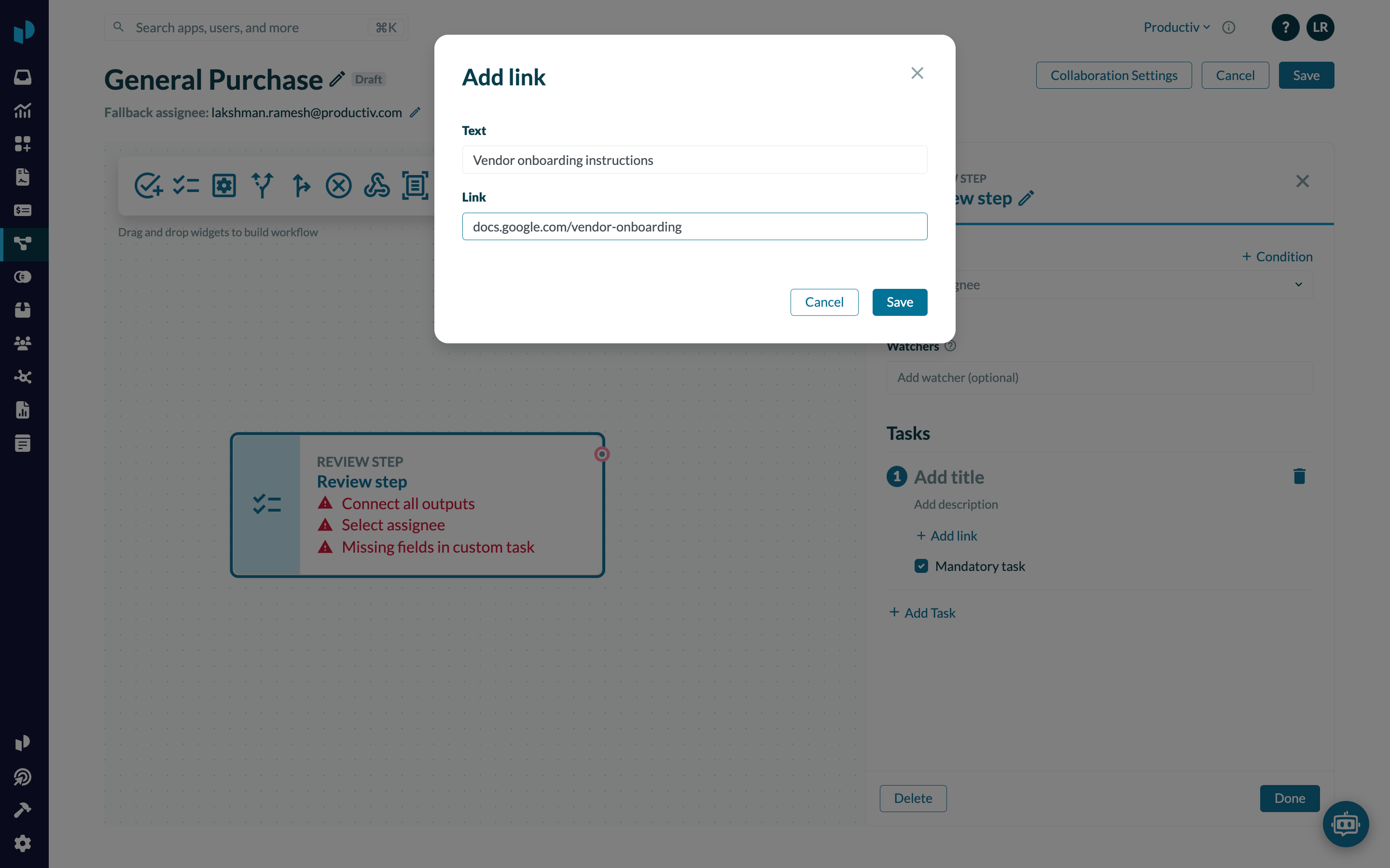 You can now include links directly within workflow tasks. This enhancement makes it easier than ever to provide users with immediate access to additional resources, such as links to documents or websites.