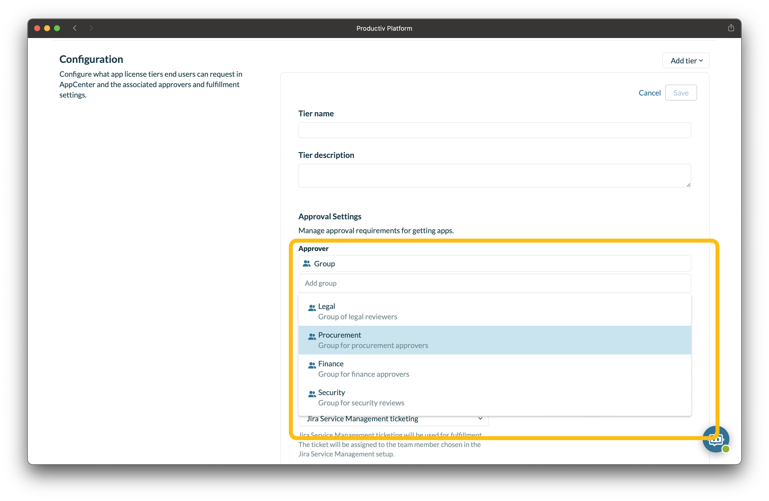 Note: You can also define user groups to be used as assignees as part of Software renewal, New software purchase and General purchase workflows.