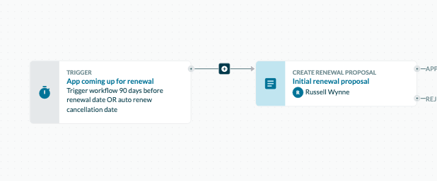 Renewal workflows can now have steps before the "Create renewal proposal" step, and after rejecting the "Create renewal proposal" step.