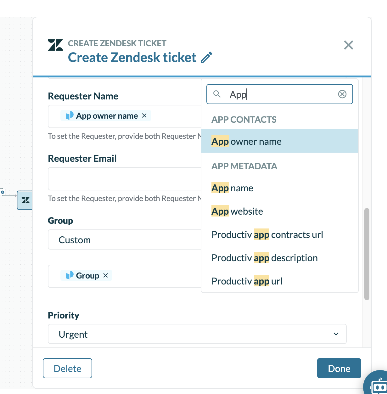 The added support for Smart fields makes the integration more flexible and easy to use. Users can easily customize the data that is forwarded into the Zendesk ticket from the context of the workflow in Productiv.