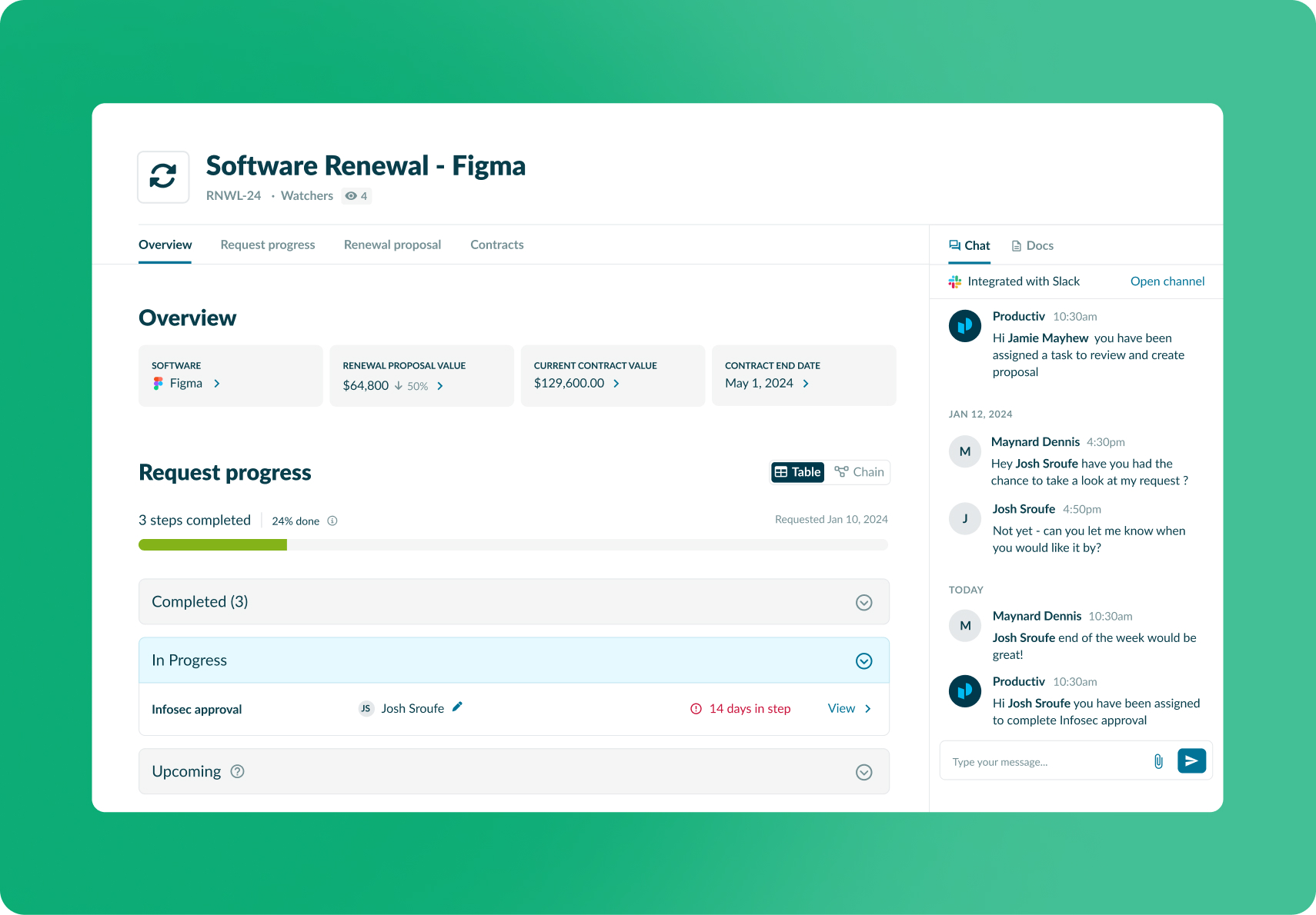 Introducing a home page for all the steps and tasks associated with a request (renewals / purchase) where users may follow along the request, see progress, and view all completed, in progress, and upcoming steps.